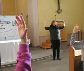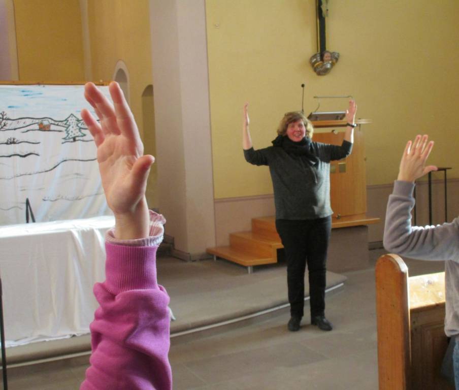 Mit vertrauten Chorälen aber auch moderneren Liedern und Kinderliedern mit Bewegungen wurde die Osterfreude auch hörbar.
