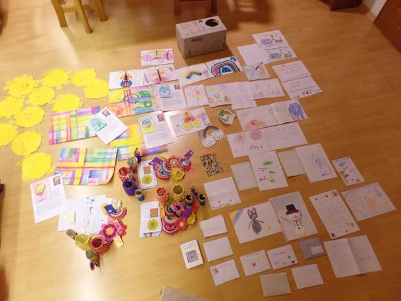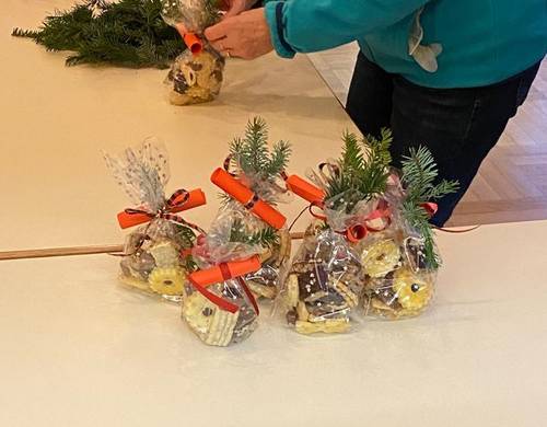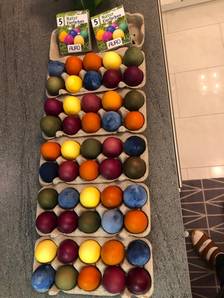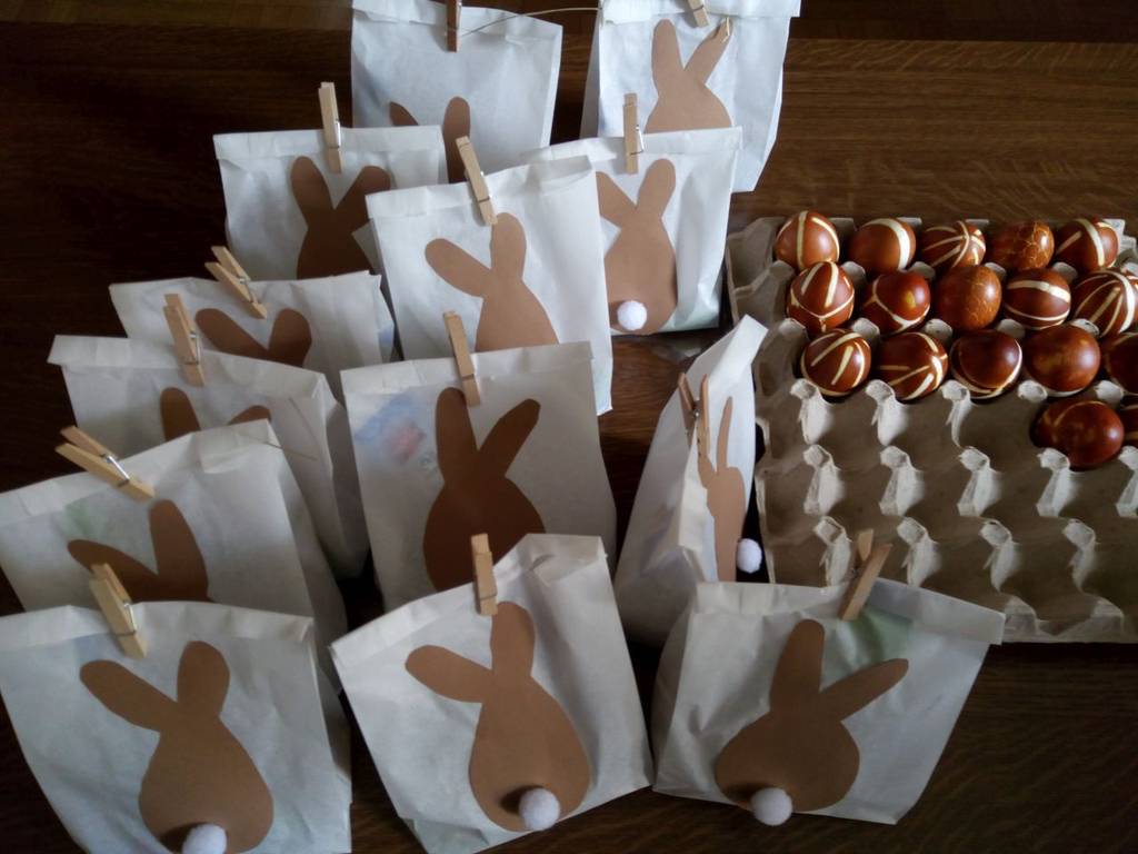Herzlichen Dank den Senior*innen, die uns 60 Eier mit Zwiebelschalen und Muster gefärbt hatten, sowie den Mitarbeiterinnen des Familienkreises für das Basteln und Befüllen der Ostertütchen.