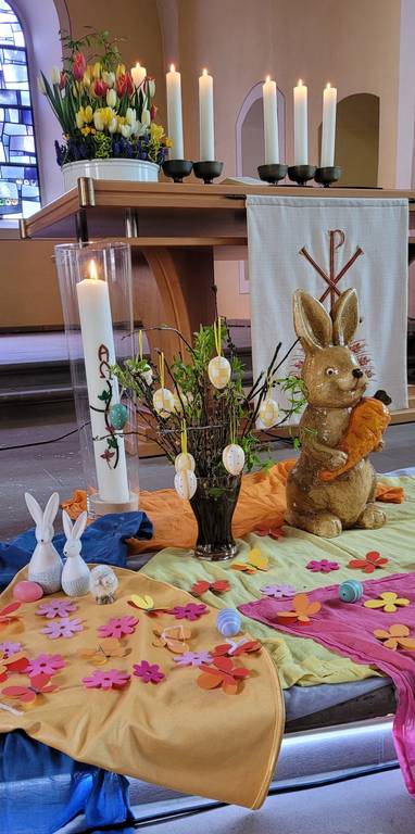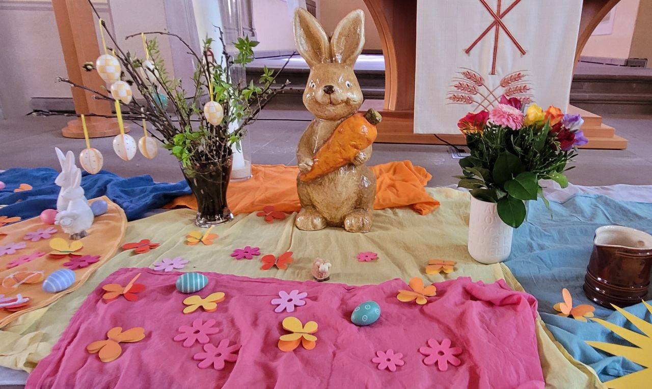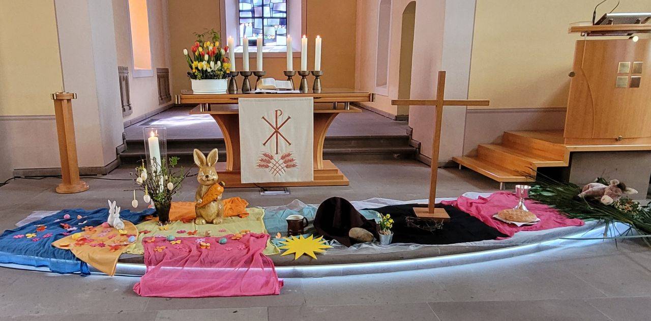 Am Ostersonntag feierten wir mit vielen Familien aus dem Gebiet unserer beiden Gemeinden einen bunten Oster-Familiengottesdienst.