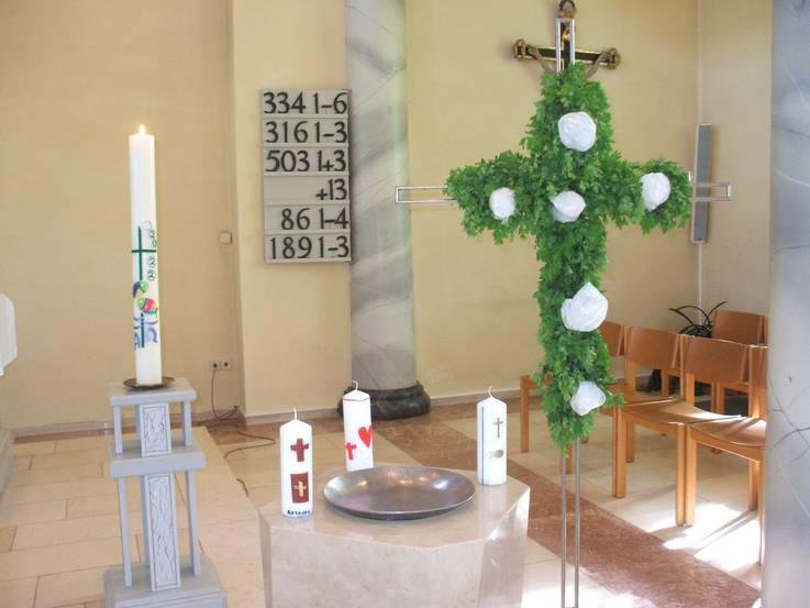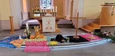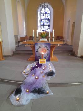 Die Kinder gestalteten dazu den Passions- und Osterweg vor dem Altar in der Lichtenauer Kirche.