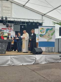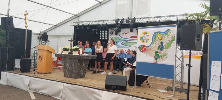 Am 23.6.2024 feierten wir anlässlich des 50jährigen Gemeindejubiläums von Rheinmünster einen ökumenischen Gottesdienst im Festzelt in Greffern.