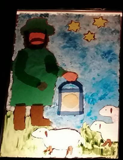 „Das ist mein Lamm!“ freute sich Simon. „Du hast mein Lamm gefunden! Danke. Kann ich dir irgendwie helfen?“ „Helfen? Mir kann niemand helfen. Mein Weg ist im Dunkeln“, sagt der Mann leise. „ Dunkel? Nein!“ rief Simon und hielt dem Mann eines seiner Lichter hin. „Hier, nimm es. Es wird deinen Weg erhellen. Was soll ich mit vier Lichtern, wenn du keines hast? Drei Lichter sind genug für mich.“