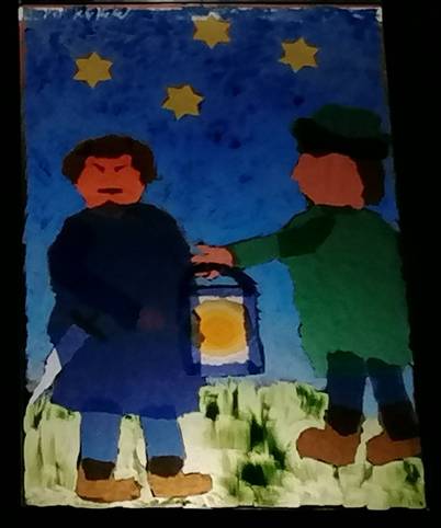 „Du willst mir ein Licht schenken? Mir?“ wunderte sich der Mann und nahm das Licht. „Du bist der erste Mensch, der freundlich zu mir ist. Danke. Danke mein Junge!“ sagte der Mann, und im Weggehen flüstert er vor sich hin: „Dabei bin ich ein Dieb.“