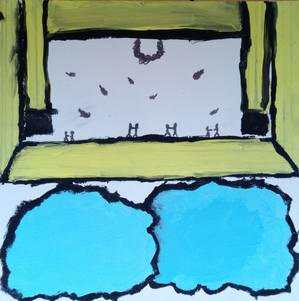 Ich habe oben links im Eck und in der Mitte die 2 Menschen und die 2 Hände auf meine Leinwand gemalt.