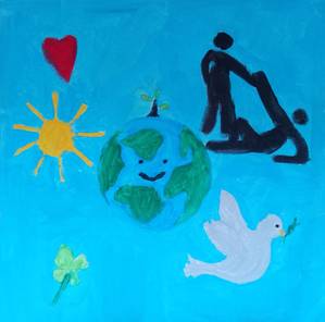 Es stellt die Hoffnung auf eine Welt voller Frieden, Gerechtigkeit und Liebe dar.