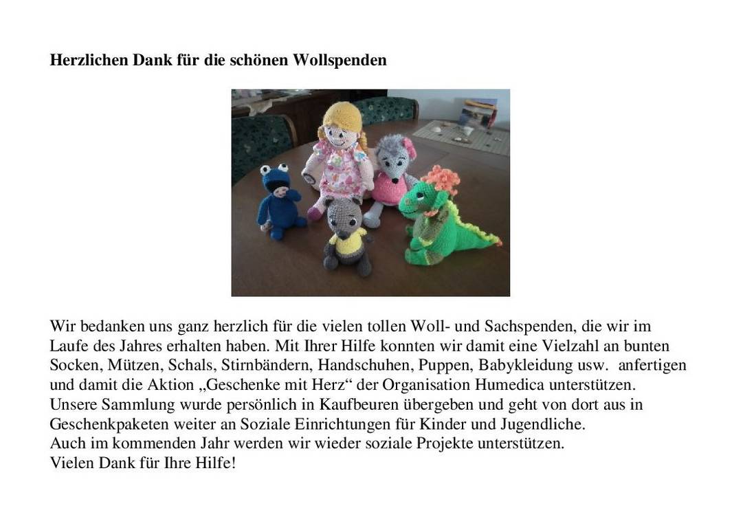 Wir möchten uns ganz herzlich bedanken für die tollen Woll- und Sachspenden, die wir im Laufe des Jahres wieder so großzügig erhalten haben.