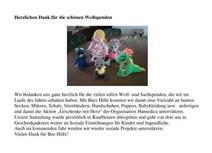 Ganz herzlichen Dank ebenso an alle Strickerinnen und Bastlerinnen, die mit viel Freude im Herzen wunderschöne Stücke hergestellt und damit Liebe und Wärme weitergegeben haben.