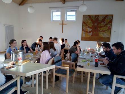 Und gut blieb die Stimmung auch beim Abendessen, dem Spielen auf der Wiese und dem entspannten Abend im Jugendkeller.