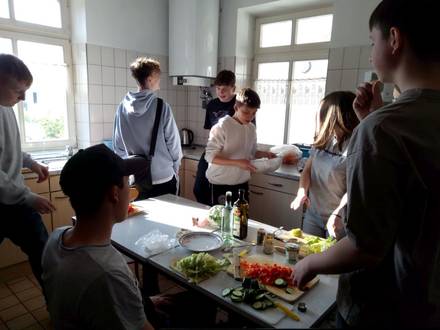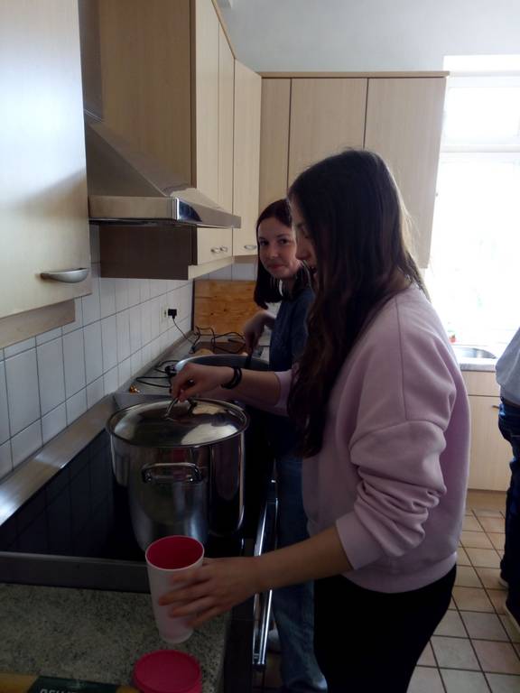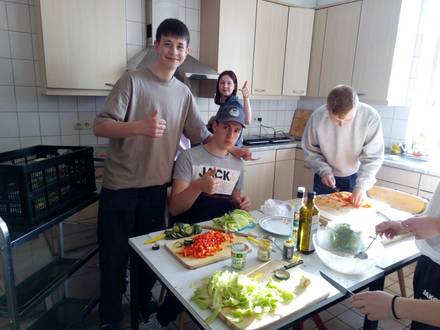 Beim gemeinsamen Kochen ging‘s schon fröhlich los.