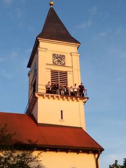 Ein Höhepunkt war auf jeden Fall die Kirchturmbesteigung, um den Sonnenuntergang über den Dächern Scherzheims zu bewundern…