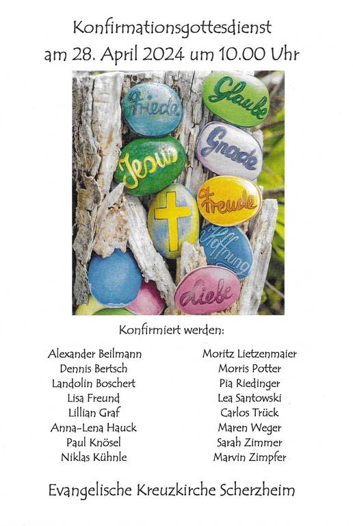Der Konfirmationsgottesdienst fand in Scherzheim am 18.05 und in Schwarzach am 25.05. statt. Zum Gottesdienst