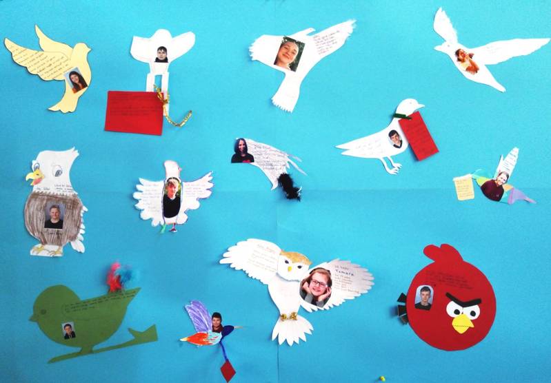 Hier vorne steht noch das Plakat mit euren Vögeln.