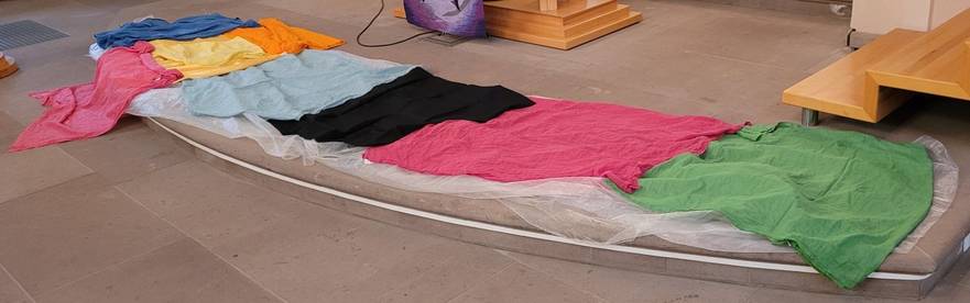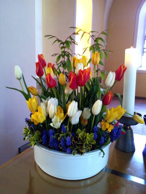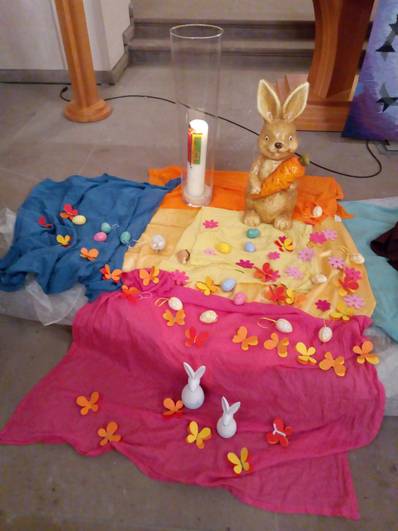 Wir haben von der Osterfreude gehört und die bunten Farben des Lebens hier in unsere Kirche gebracht.
