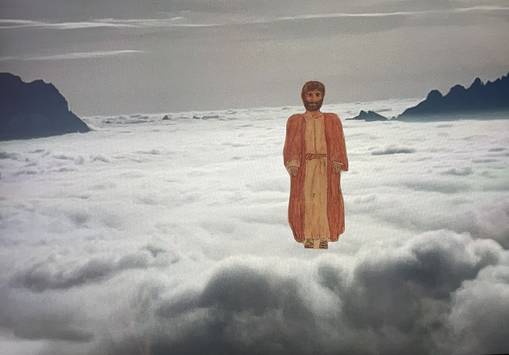 Mein Ort für Jesus ist auch über den Wolken, im Himmel. Dort soll er sein, weil ich immer, wenn ich an Gott denke, dieses Bild im Kopf habe und auch immer vom Himmel gesprochen wird - zum Beispiel im Glaubensbekenntnis.
