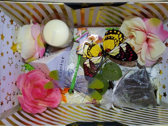 In meiner Box ist eine Bibel für den Glauben, ein Herz für die Liebe, eine Kerze für den Heiligen Geist und ein Kreuz für Jesus Christus.