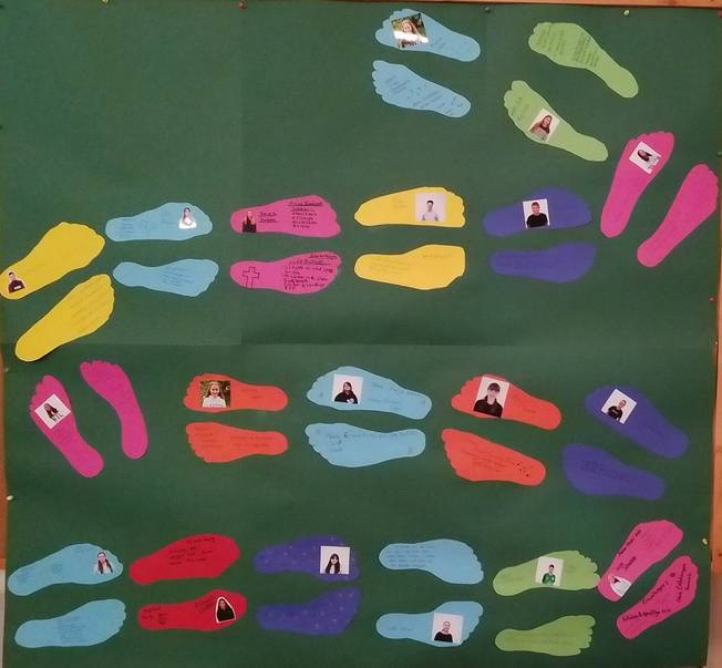 Und jetzt seid ihr gemeinsam unterwegs – wie es eure Fußspuren hier vorne auf dem Plakat zeigen. Und ihr hattet ja jetzt auch schon Gelegenheit euch ein bisschen kennenzulernen – denn wenn man weiß, wer da mit einem unterwegs ist, fällt das Losgehen viel leichter.